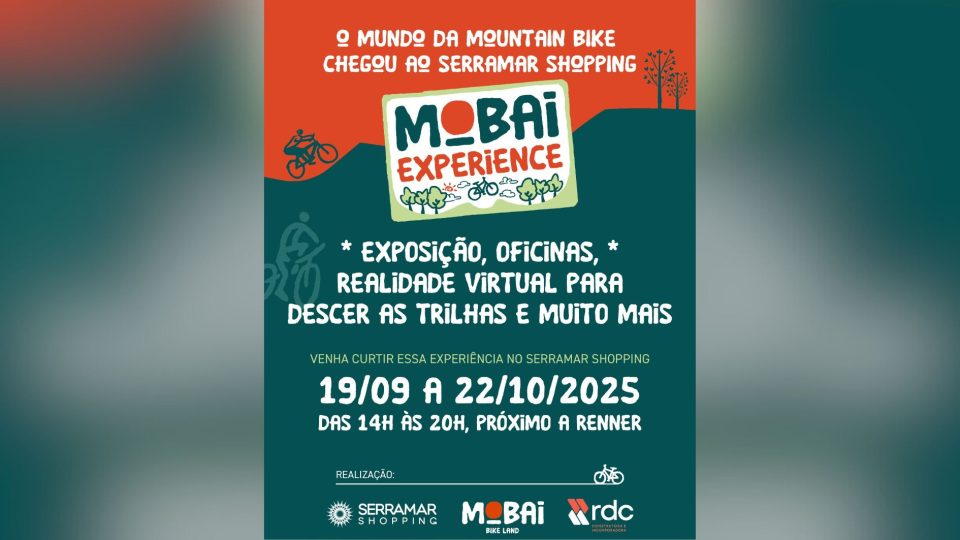 A partir de 19 de setembro, o Serramar Shopping se transforma no ponto de largada para quem busca aventura, tecnologia e muita adrenalina. Com realidade virtual e trilhas interativas, o Mobai Experience promete aproximar o público do universo do mountain bike sem sair do litoral. A atividade acontece até 22 de outubro, das 14h às 20h.