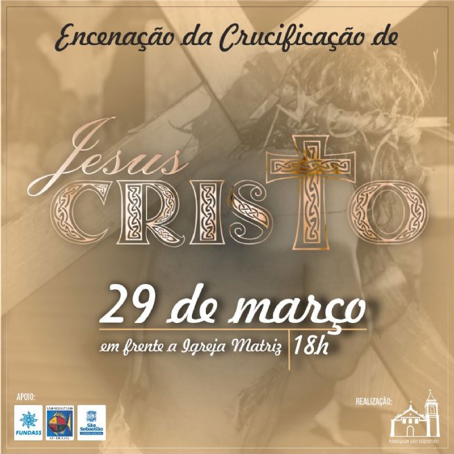 A Igreja Matriz, com o apoio da Prefeitura de São Sebastião, por meio da Fundação Educacional e Cultural ‘Deodato Sant’Anna’ (Fundass) e da Secretaria Municipal de Turismo (SETUR), realiza a emocionante Encenação da Crucificação de Jesus Cristo, na Sexta-Feira da Paixão, dia 29 de março.