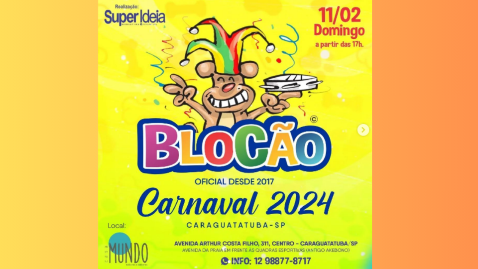 Vem aí o BLOCÃO 2024, o tradicional bloco que já possui história desde 2017 e hoje anuncia mais uma edição! As atrações desta folia garantem diversão para toda família. Confira a programação: