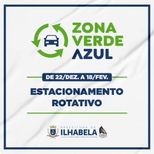 A Prefeitura de Ilhabela dá início nesta quarta-feira (27), ao sistema de estacionamento rotativo “Zona Verde e Azul”, na Vila, Centro Histórico da cidade, sempre das 15h às 23h59. A medida será válida até o dia 18 de fevereiro de 2024 e visa dar mais fluidez na mobilidade urbana e garantir a rotatividade de estacionamento no Centro, o que beneficia o comércio local.