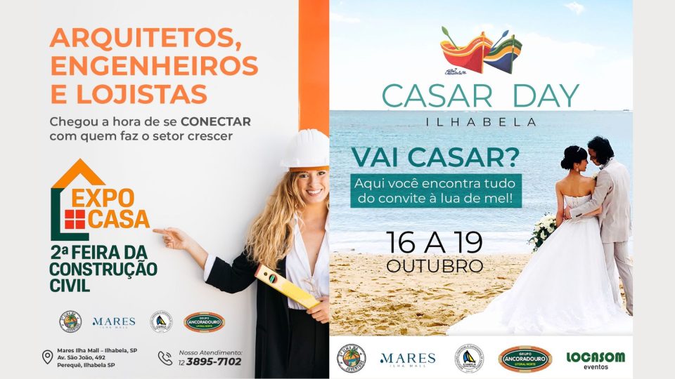 Ilhabela será palco de dois grandes eventos que prometem movimentar o próximo fim de semana no Mares Ilha Mall. A Expo Casa – 2ª Feira da Construção Civil e o Casar Day Ilhabela fazem parte da extensa programação do 3º Ilha da Juventude, iniciativa que promove atividades culturais, econômicas e educacionais espalhadas pela cidade entre os meses de outubro e novembro.
