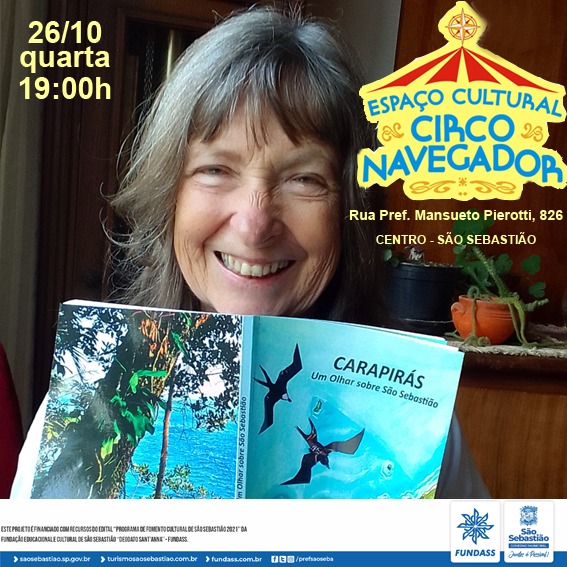 A programação com entrada gratuita no Espaço Cultural Circo Navegador traz muitas novidades. Amanhã, quarta-feira (26/10), às 19h, Nícia Guerriero apresenta, juntamente com artistas e personalidades ‘convidades’, o livro recém-lançado: “CARAPIRÁS – Um Olhar sobre São Sebastião”. No dia 03 de novembro, quarta-feira, às 20h, também com entrada franca, será exibido o filme “Fé e Fúria” do diretor Marcos Pimentel, que foi gravado em 2019 e reconhecido pelo World Premiere: IDFA 2019 – International Documentary Filmfestival Amsterdam. E no dia 06 de novembro, domingo, às 17h, a Cia do Trailler – Teatro em Movimento, de São José dos Campos, comemora 20 anos de pesquisa e produção teatral com o espetáculo “Sputnik II e outras histórias caninas”. O projeto foi contemplado pelo Proac Editais 2021.