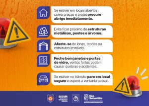As equipes da Defesa Civil da Secretaria de Segurança Urbana (Segur) e de Serviços Públicos (Sesep) estão nas ruas para atuarem em caso de necessidade. O Comitê de Crise da Prefeitura também está de prontidão
