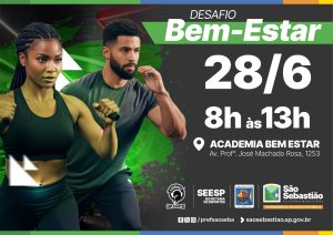 O bairro da Topolândia, na região central de São Sebastião, será palco de um grande evento que une saúde, nutrição e esporte: o Desafio Bem-Estar, que ocorrerá no dia 28 de junho (sábado), a partir das 8h, na Academia Bem-Estar. A entrada é solidária: basta doar 1 kg de alimento não perecível (exceto sal e açúcar).
