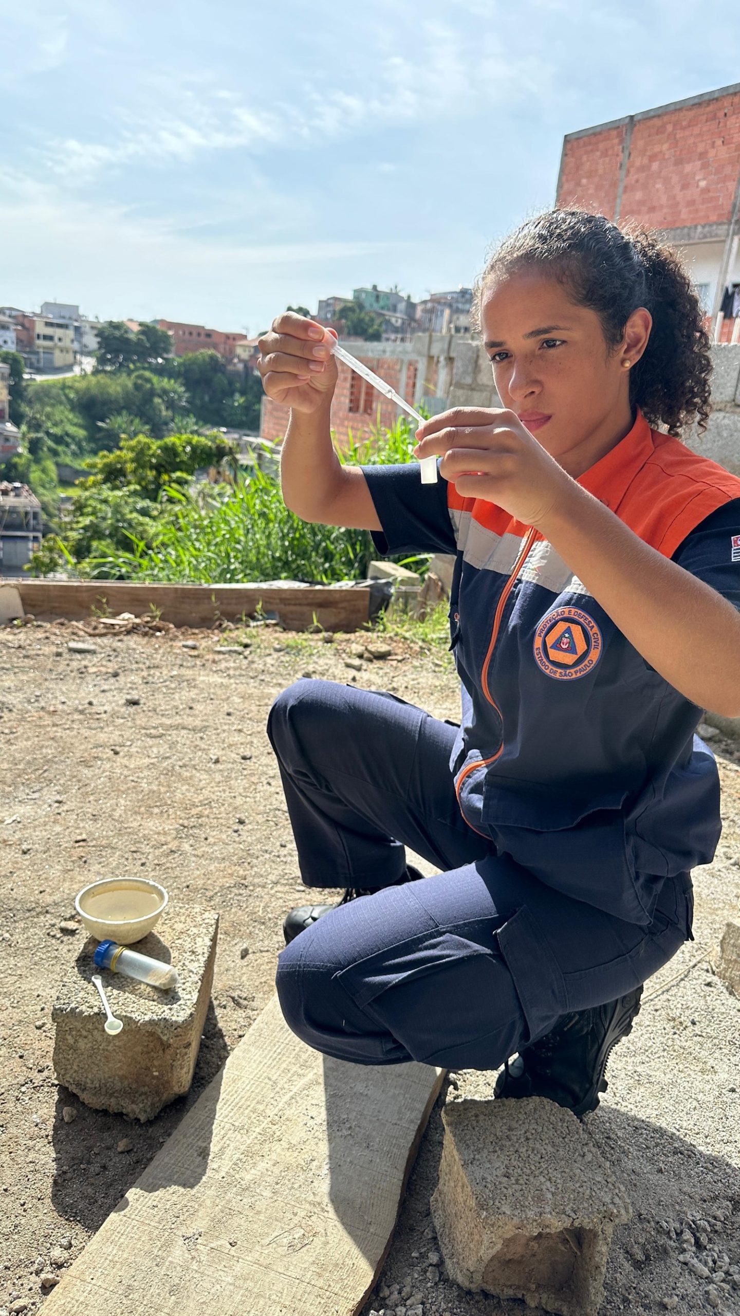 O monitoramento da dengue também é realizado fora dos laboratórios. Policial militar há sete anos, a cabo Suellen percorre os municípios do estado com maiores taxas de dengue. Sua missão é desmobilizar focos do mosquito e conscientizar a população.